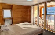 балкон с видом на озеро, тумбочки, шкаф, набор мягкой мебели, телевизор, холодильник, чайник