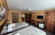 благоустроенные номера в двух гостиничных корпусах (Л1+, Л2+, Л3+, Семейный с балконом, ПЛ с балконом, СТ-1, СТ-2, СТ-3), работает круглогодичное благоустроенный номер на 2-м этаже банного корпуса (Студия), рабоатет круглогодично |